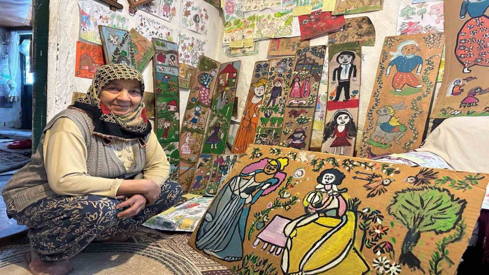 Çanakkale’nin Ayvacık ilçesinde yaşayan 74 yaşındaki Hakime Pala Gürel, 15 yıldır yaptığı binlerce resmi annesinden kalma evinde sergiliyor. Kartonlara, ağaç ile taş parçalarına ve kağıtlara çizdiği binlerce resimle evini kaplayan Gürel’in tek tutkusu, gördüklerini ve yaşadıklarını resimlere aktarmak.