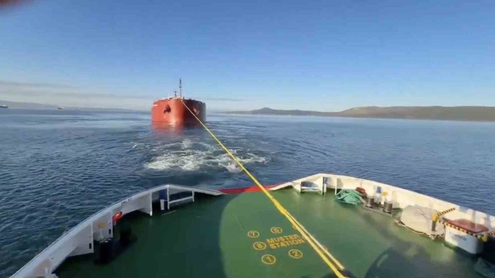 Gemi römorkörler refakatinde yedeklenip çekilerek Şevketiye Demir Sahası’na emniyetle demirletildi.