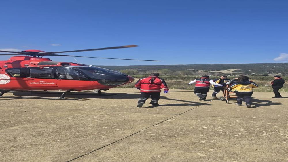 Gökçeada’da rahatsızlanan hasta helikopter ambulansla Çanakkale’ye sevk edildi