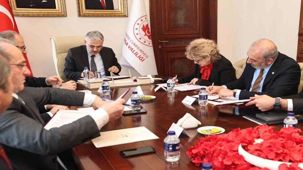Orhangazi Küçük Sanayi Sitesi’nde 8 sınıflı Mesleki Eğitim Merkezi Yapımı Bağışçı Protokolü, Bursa Valisi Erol Ayyıldız öncülüğünde İl Milli Eğitim Müdürü Dr. Ahmet Alireisoğlu, Orhangazi Kaymakamı Zafer Karamehmetoğlu, Orhangazi Belediye Başkanı Bekir Aydın, Orhangazi Ticaret ve Sanayi Odası Yönetim Kurulu Başkanı Erol Hatırlı ve bağışta bulunan iş adamı Metin Derin’in vasiyet yükümlüsü vakıflar (TOÇEV, TEV, TEGV) adına Ebru Uygun arasında imzalandı.