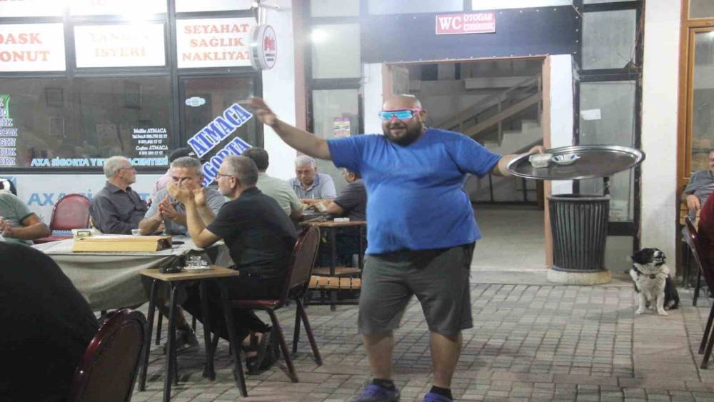 Çanakkale’nin Bayramiç ilçesinde kahvehanede garsonluk yapan Yetkin Sarıkaya (32), çay dağıtırken yaptığı danslarla fenomen oldu.