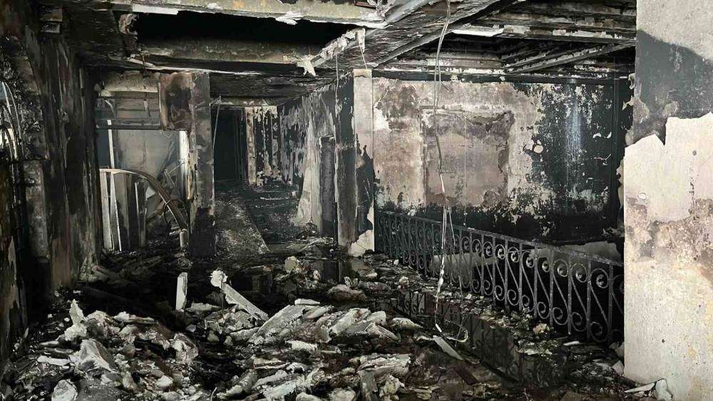 30 itfaiye ekibinin çalışmasıyla yangın 11.00 sıralarında tamamıyla söndürüldü. Yangının yaşattığı büyük zarar ise otelin içerisinden görüntülendi. İHA ekibi itfaiyecilerle birlikte küle dönen otelin içerisini görüntüledi.